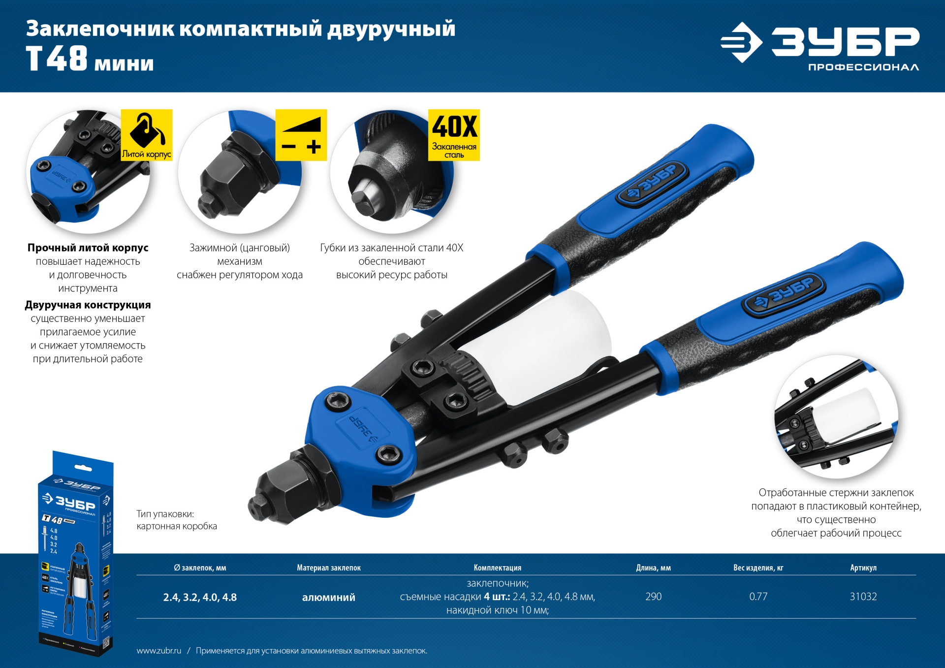 Тип заклепочника: компактный двуручный