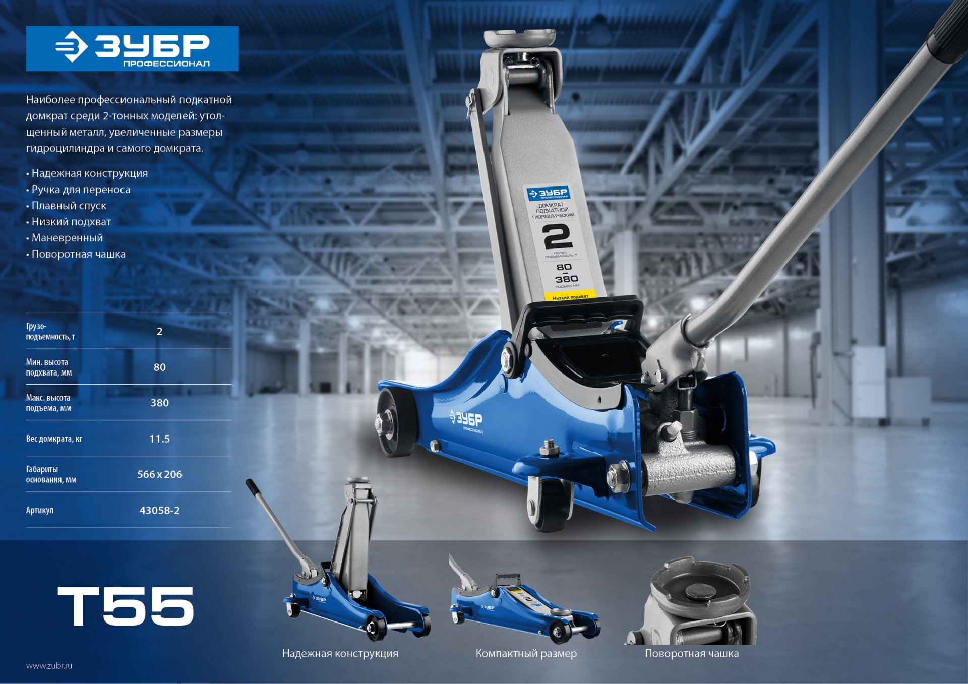 Низкая высота подхвата домкрата дает возможность работы со спортивными ″низкими″ автомобилями. Небольшие размеры и вес делают его очень мобильным. Удобно пользоваться в ограниченных пространствах ремонтного бокса или гаража.