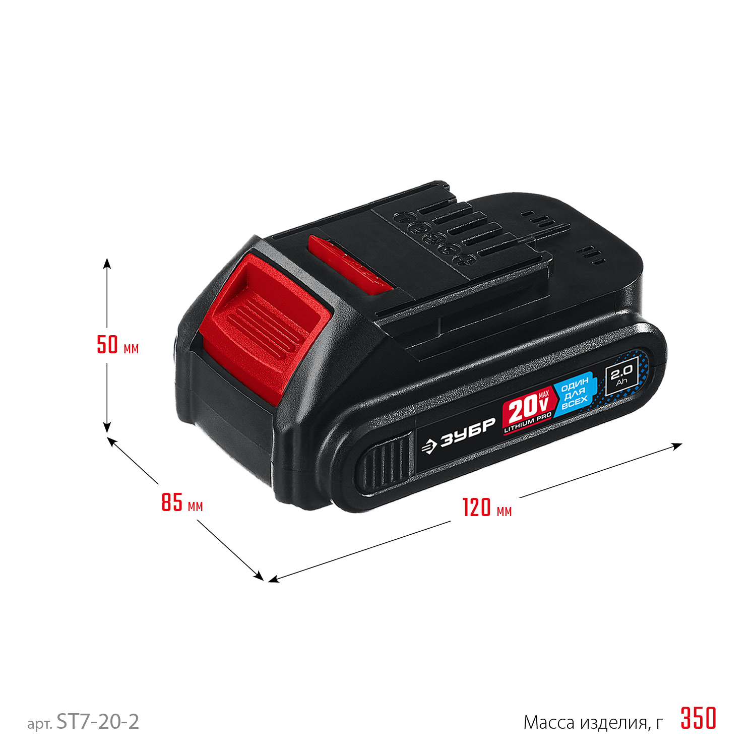 ЗУБР T7, 20 В, 2.0 А·ч, аккумуляторная батарея, Профессионал (ST7-20-2)