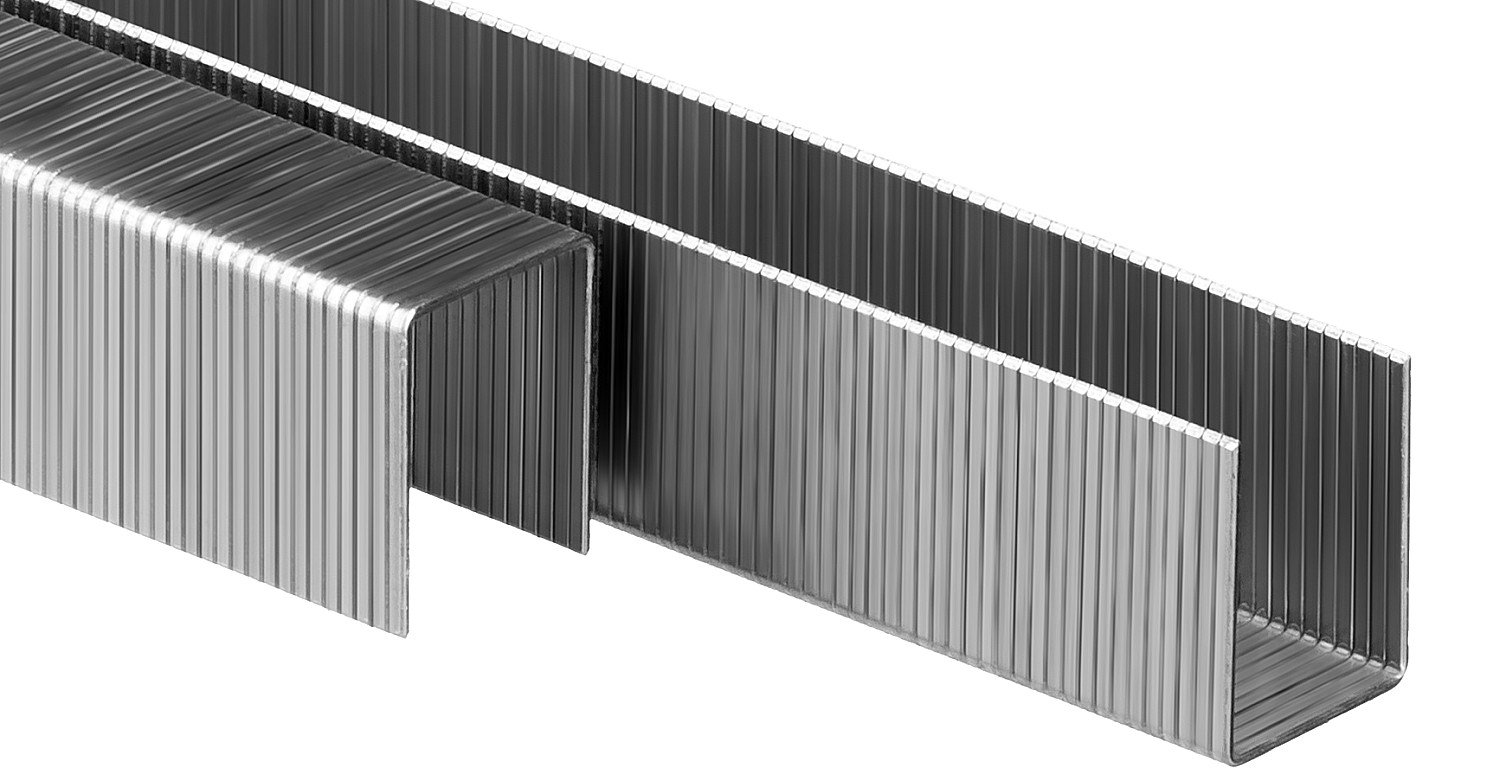 • Скобы с узкой спинкой не повреждают прикрепляемый материал и практически незаметны после установки,