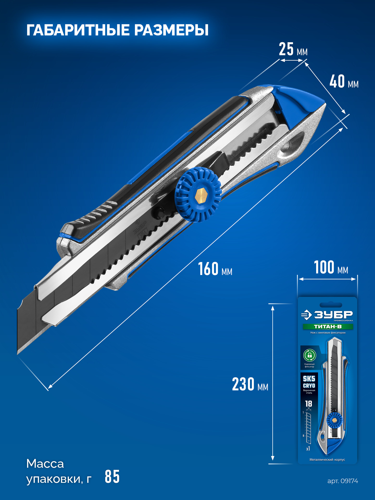 - -Винтовой фиксатор надежно фиксирует лезвие при работе с большими усилиями,