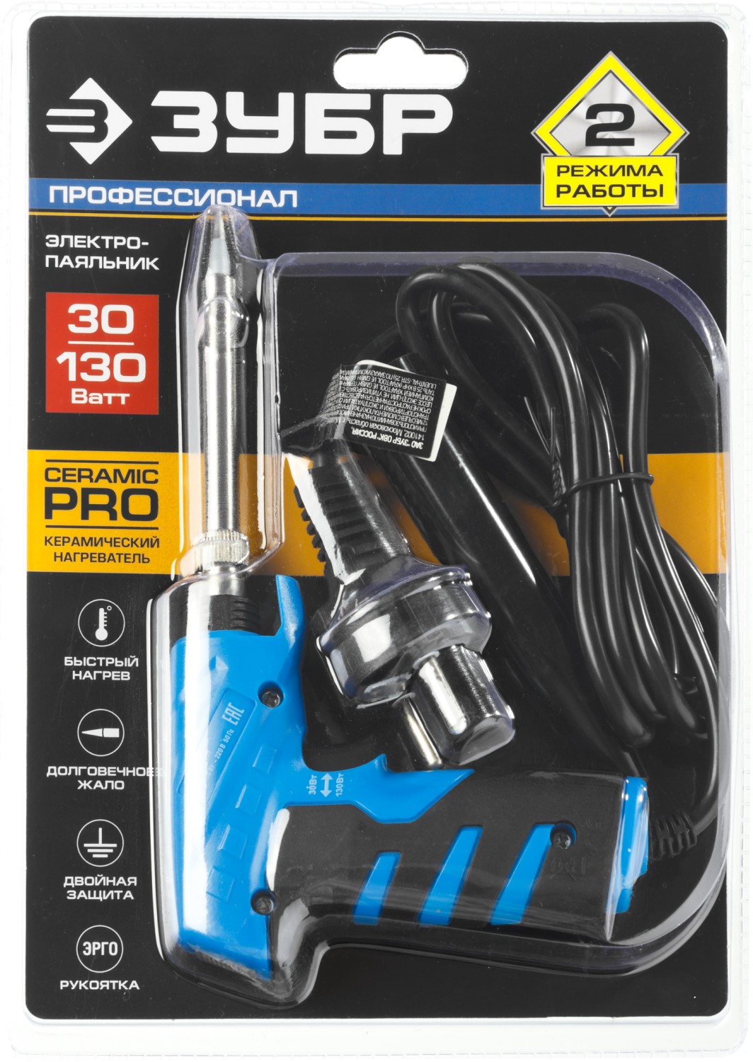 ЗУБР ТУРБО 30/ 130 Вт, конус, керамический нагреватель, электропаяльник с пистолетной рукояткой, Профессионал (55408)