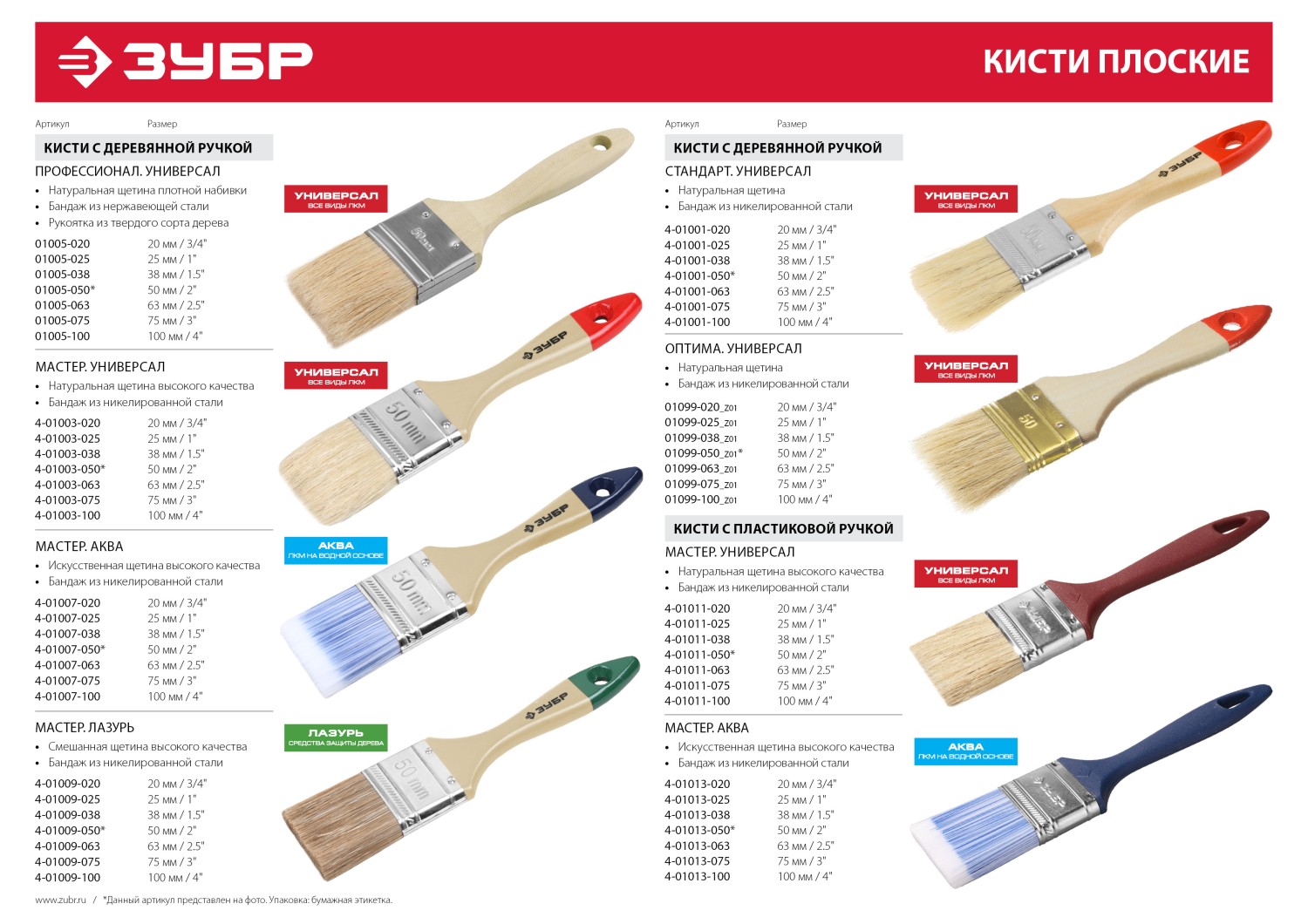ЗУБР УНИВЕРСАЛ, 20 мм, светлая щетина, деревянная ручка, плоская кисть (01099-020)