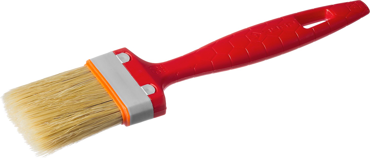 Натуральная щетина обеспечит оптимальное нанесение различных видов ЛКМ, щетина кисти надежно закреплена стальным бандажом, а наличие легкой пластмассовой рукоятки обеспечит комфортную работу