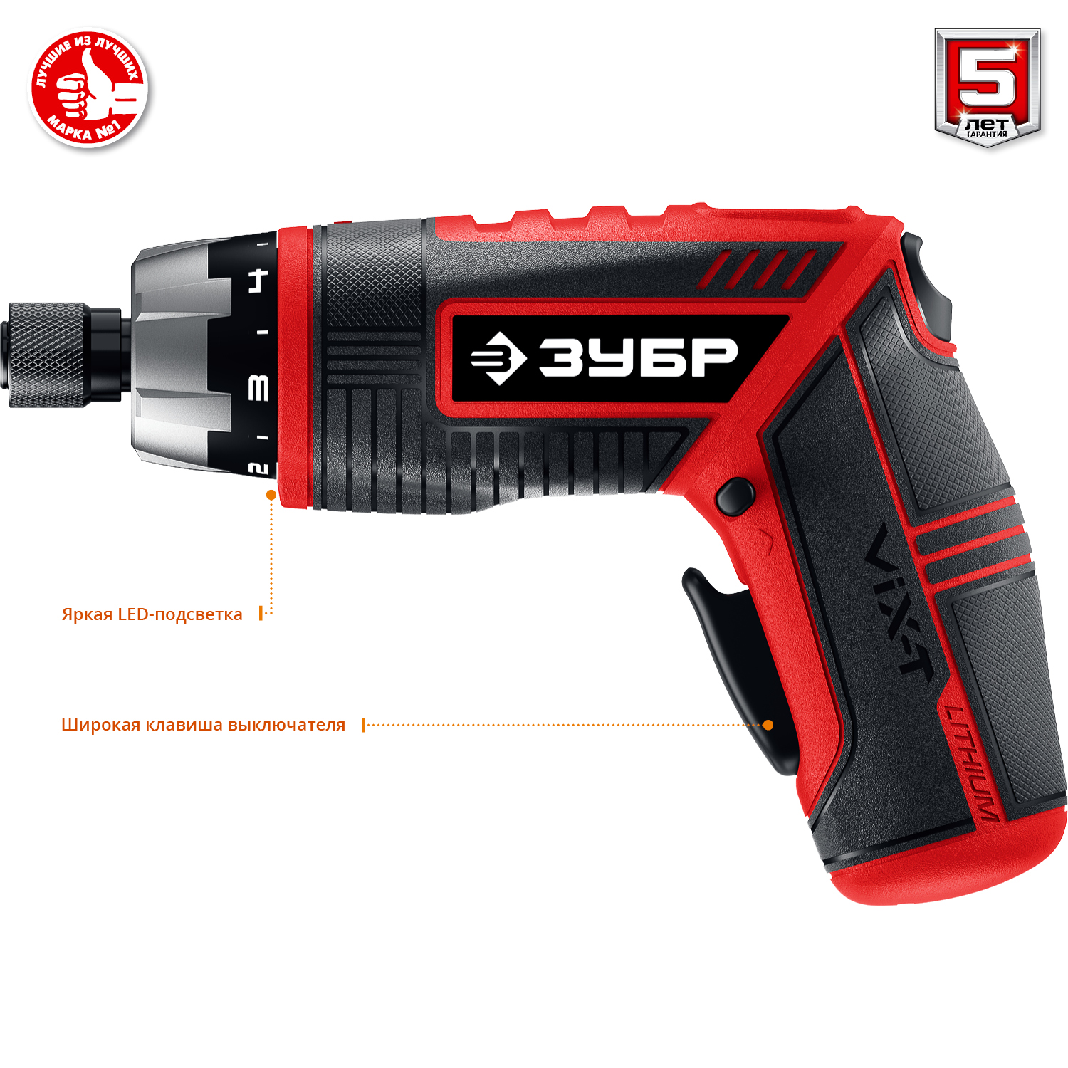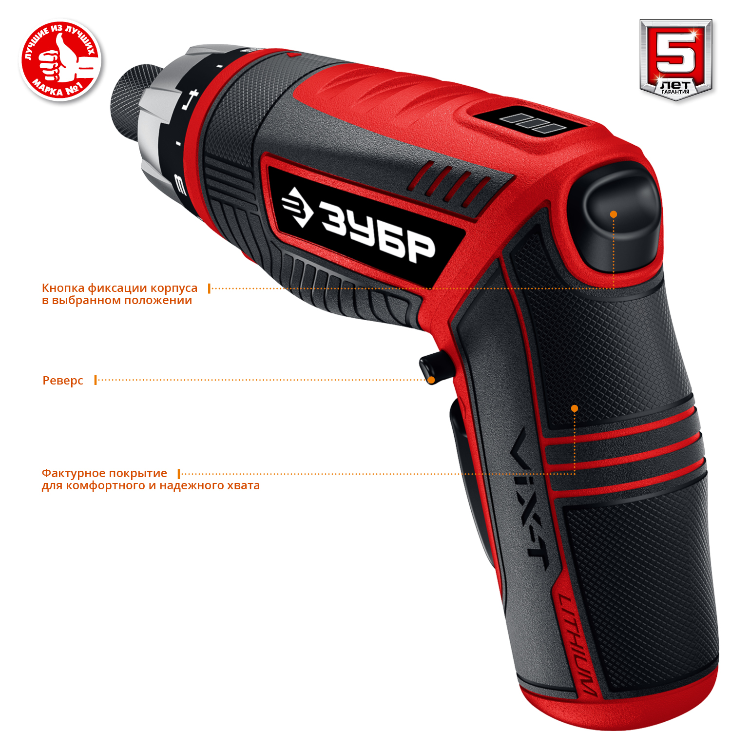 Инструмент для заворачивания/отворачивания крепежа с Li-Ion аккумулятором - незаменимый помощник в быту. Многофункциональность, мощность, удобство в эксплуатации, легкая замена инструмента, встроенная подсветка, настройка и трансформация под любой режим работы, большой набор сменного инструмента - неоспоримые преимущества отвертки ЗУБР