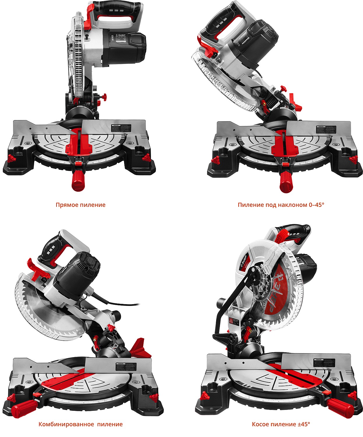 Для прямого, косого, под наклоном и комбинированного пиления заготовок из древесины и ее производных (в том числе с пластиковыми покрытиями), а также тонкого алюминиевого профиля