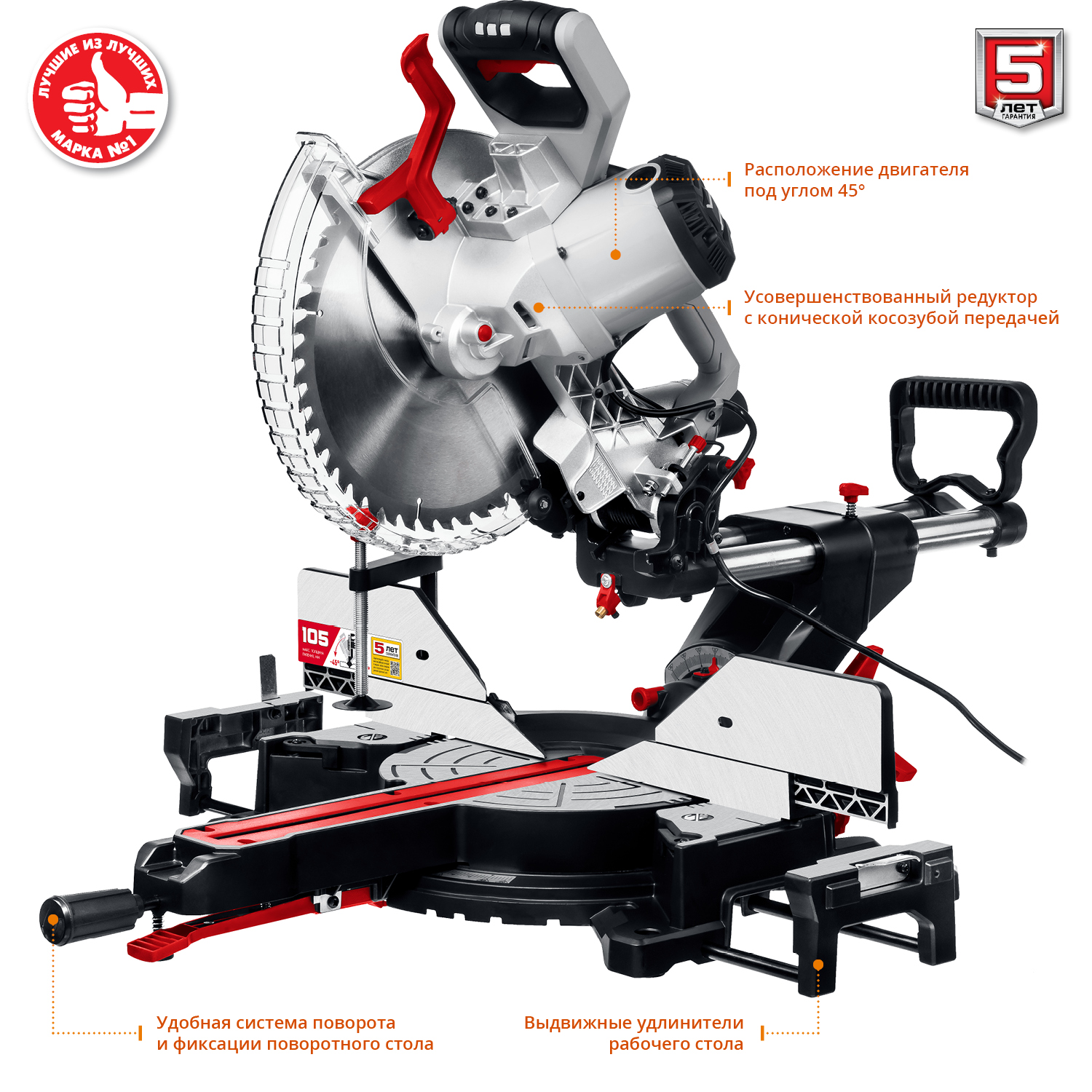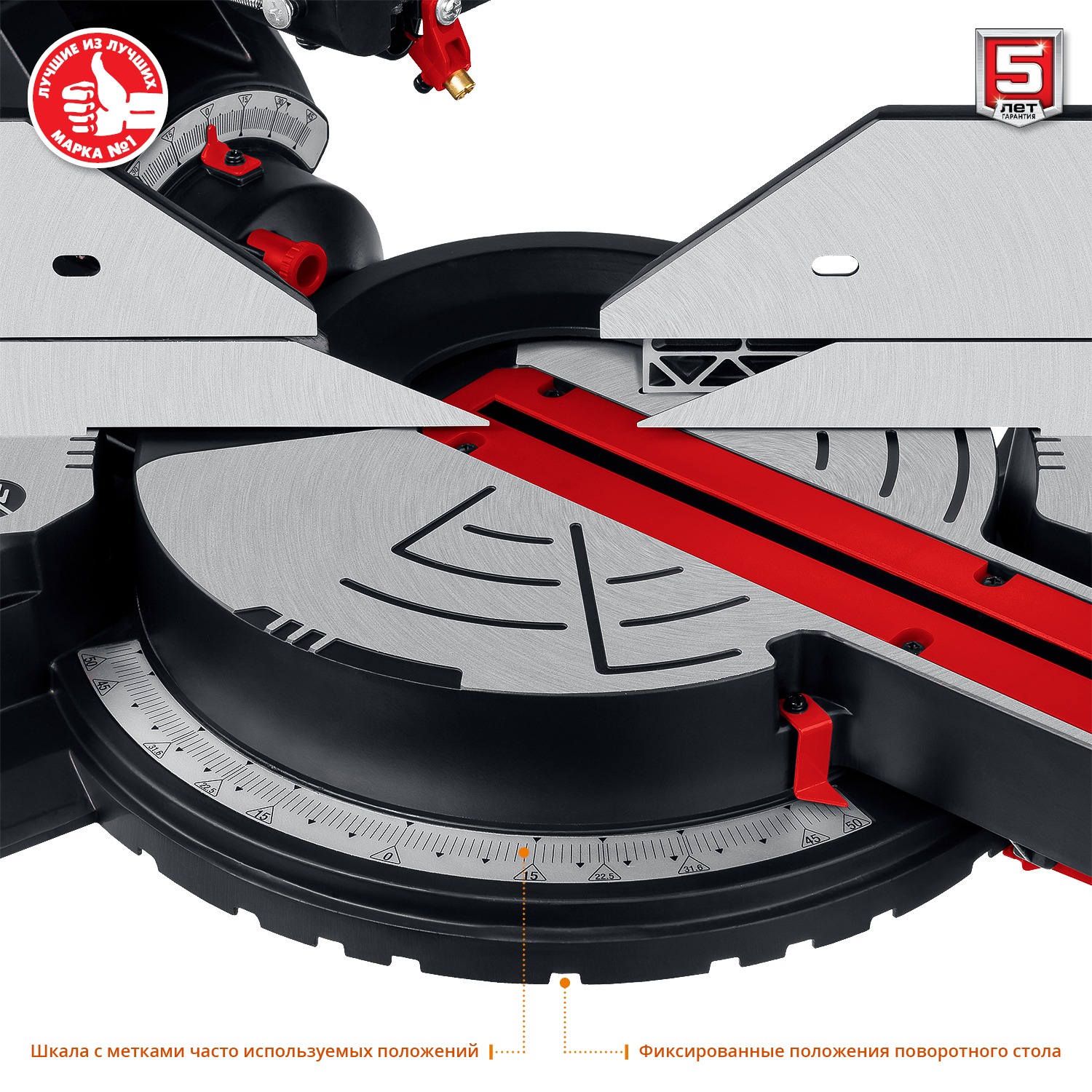 - Специальный сплав обеспечивает легкость и прочность конструкции и, соответственно, точность пиления