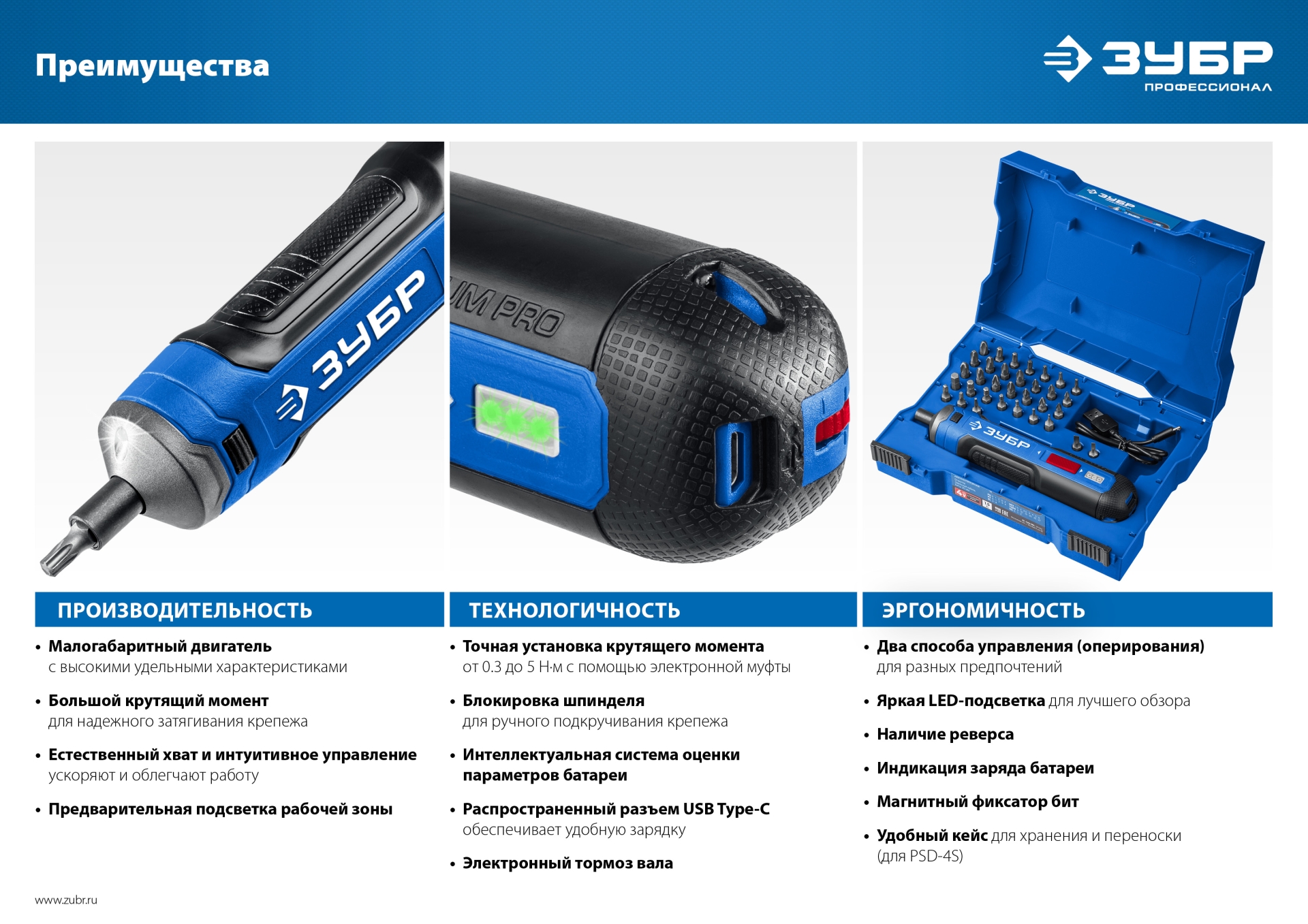 - Компактная отвертка с удобным хватом и интуитивным управлением