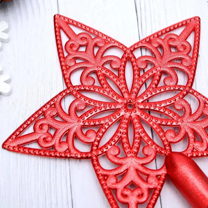 Подарите ёлке яркий финал с новогодней звездой «Алая роспись» — стильным акцентом в духе барокко и скандинавской минимализации. Резной ажурный узор насыщает красный цвет объёмом, а компактные размеры 15×15 см делают украшение удобным для любой ёлки. Эта верхушка подчеркнёт торжество момента без лишнего пафоса.
