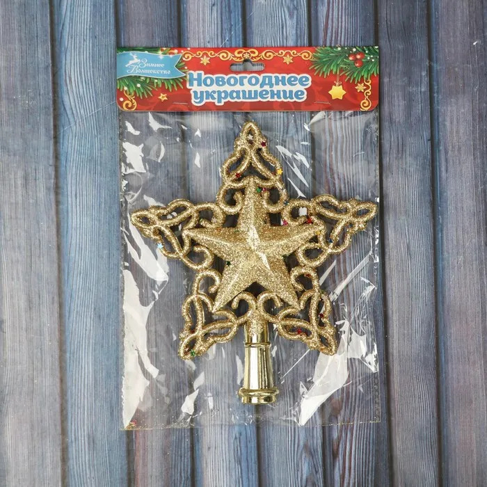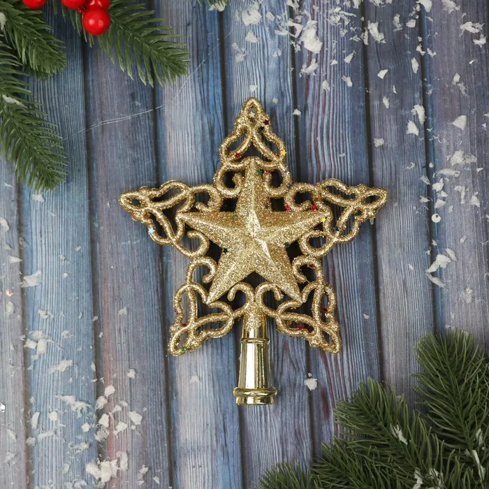 Звезда на ёлку (верхушка), блеск, 15×16 см, золотистый — Характеристики