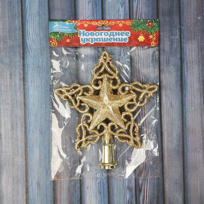 Звезда на ёлку (верхушка), блеск, 15×16 см, золотистый