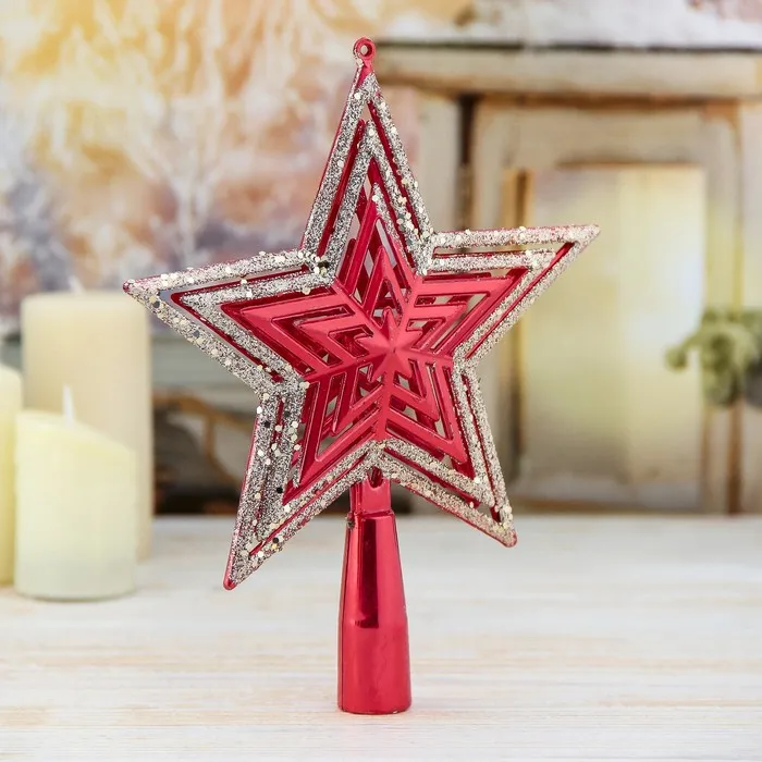 Звезда на ёлку (верхушка), блёстки, 15×18.5 см, красный — Характеристики