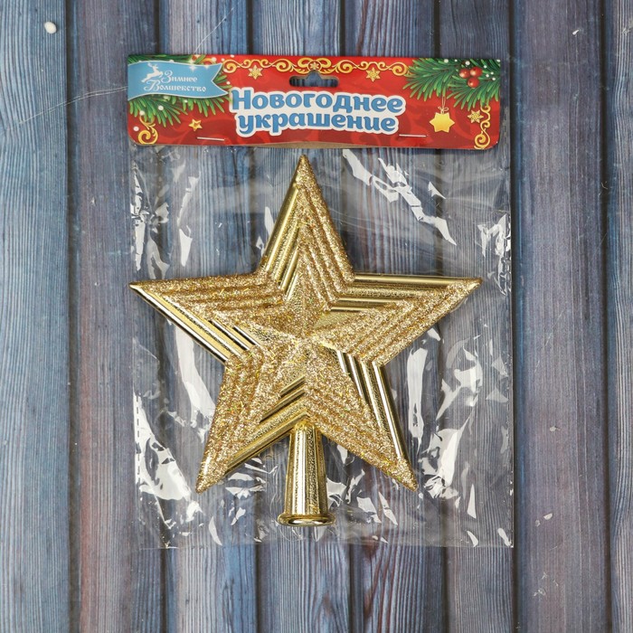 Звезда на ёлку (верхушка) классика сияние полоски, 14х14 см, золото