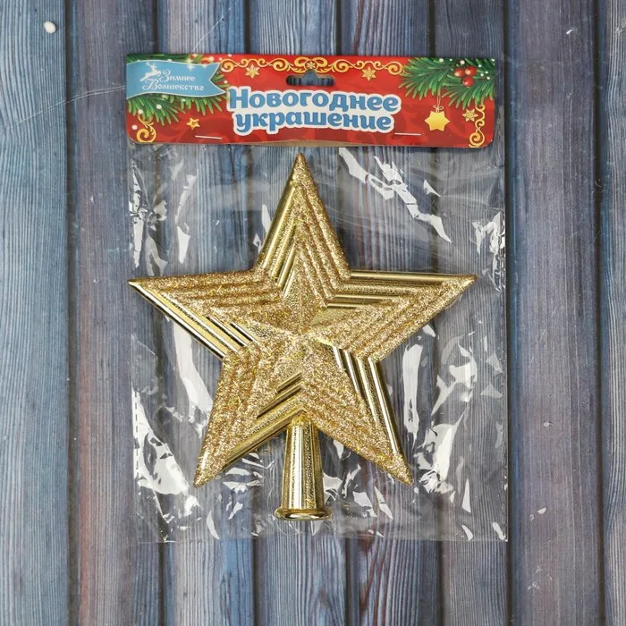 Звезда на ёлку (верхушка) классика сияние полоски, 14х14 см, золото — Характеристики