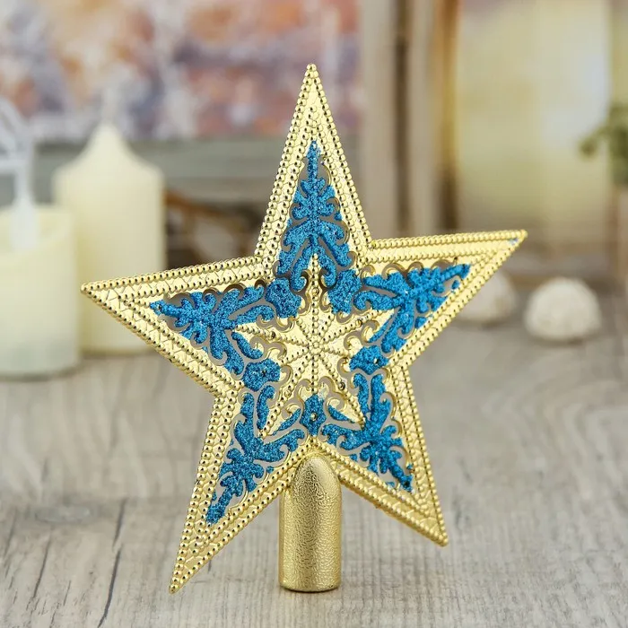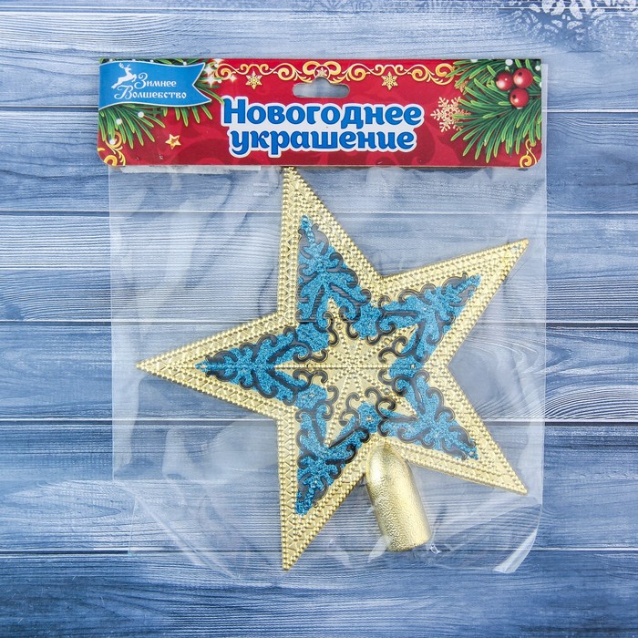 Звезда на ёлку (верхушка) кружевной узор, 15х14,5 см, золотисто-синий