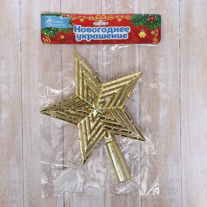 Звезда на ёлку (верхушка) объёмные грани, 15х18,5 см, золото — Характеристики