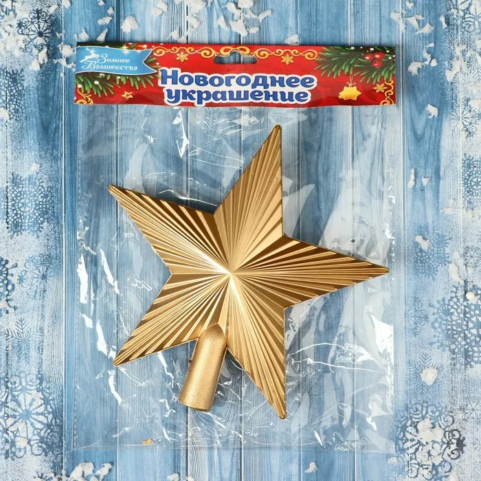 Звезда на ёлку (верхушка) рельеф, 18х19 см, золото — Характеристики