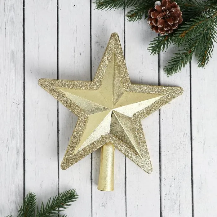 Эта звезда — не просто украшение. Она знаменует собой завершение подготовки к Новому году и становится его финальной нотой. Её золотистая поверхность мягко играет с светом, напоминая мерцающие блики на сугробах или последний луч заходящего солнца. Размер 20 см делает её идеальной для высоких ёлок — украшение остаётся заметным, но не перегружает композицию.