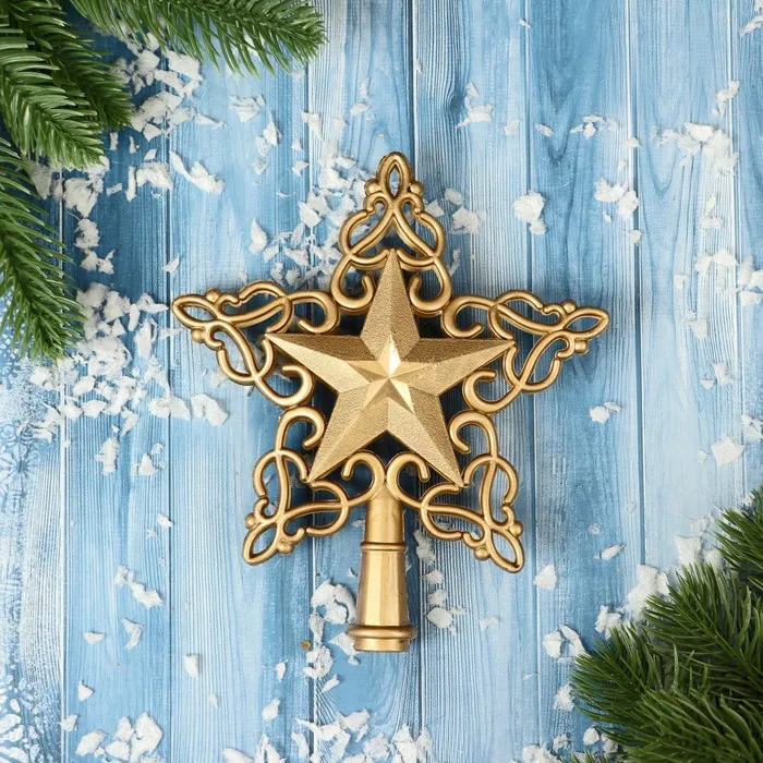 Звезда на ёлку (верхушка) , вензеля, 14х16 см, золото — Характеристики