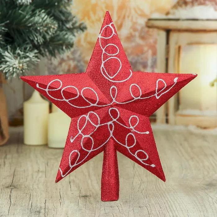 Звезда на ёлку (верхушка) завитки, 22х23 см, бело-красный — Характеристики