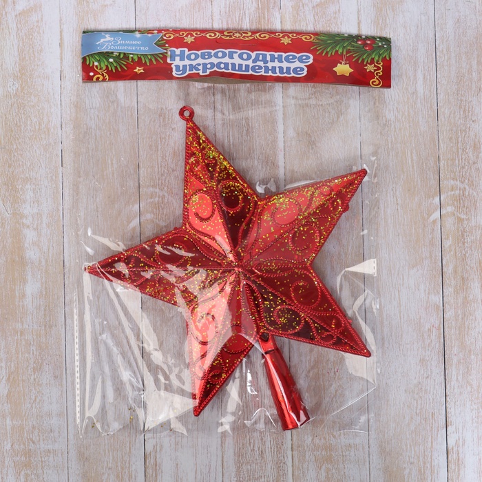 Звезда на ёлку (верхушка) завитки с блёстками, 20,5х23 см, жёлто-красный