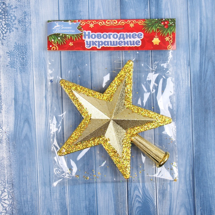 Звезда на ёлку (верхушка) «Звезда объём блеск края» 16×15 см, золотистый
