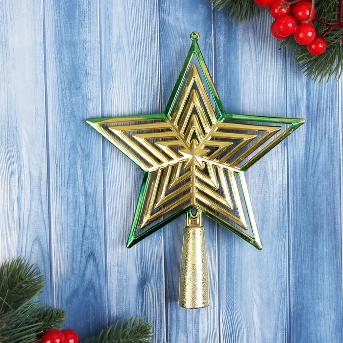 Звезда на ёлку (верхушка) "Звезда объём колор" 18х14 см, золотисто-зелёный