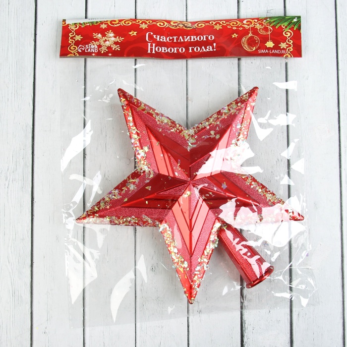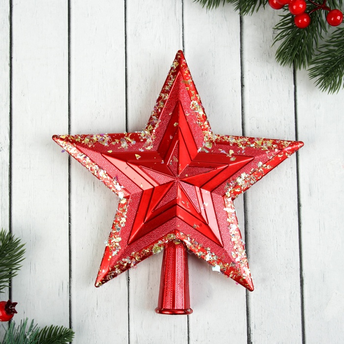 Звезда на ёлку (верхушка) "Звезда объём сияние" 20,5х19 см, красный