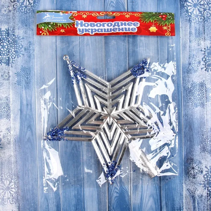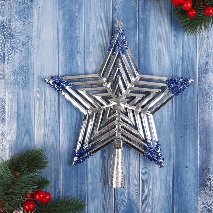Звезда на ёлку (верхушка) "Звезда полоска объём" 23х20,5 см, серебристо-синий — Характеристики