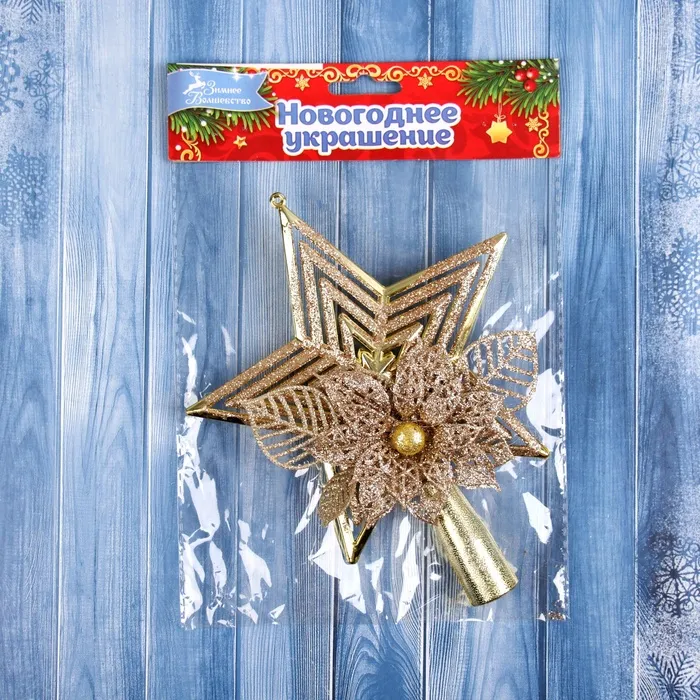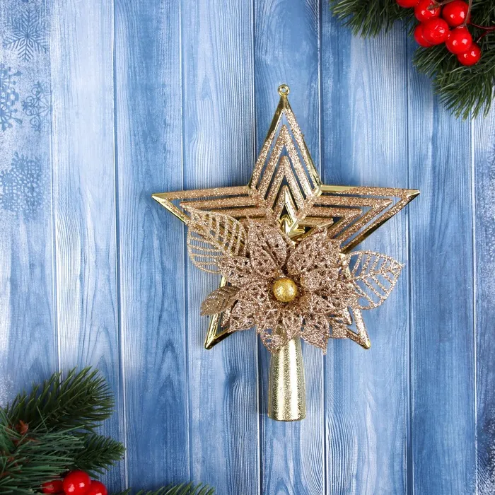 Звезда на ёлку (верхушка) "Звезда полоски объём цветок" 18х14 см, золото — Характеристики