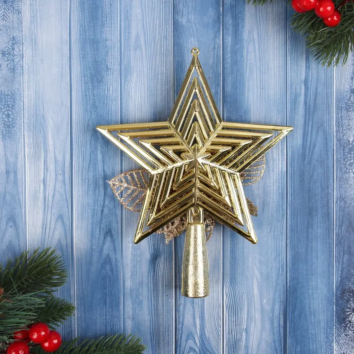 Звезда на ёлку (верхушка) "Звезда полоски объём цветок" 18х14 см, золото