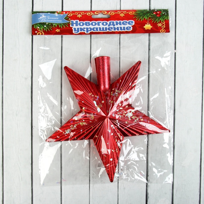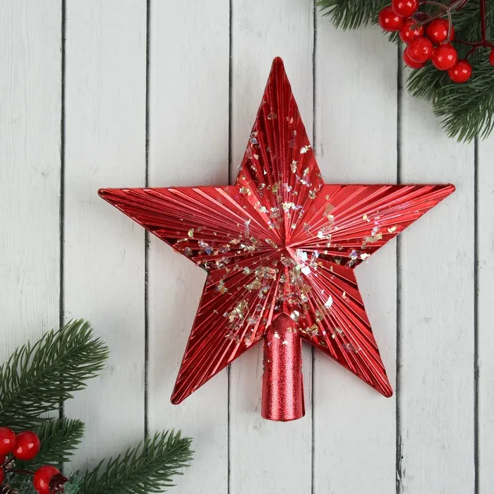 Звезда на ёлку (верхушка) "Звезда ребристая сияние" 19,5х19,5 см, красный