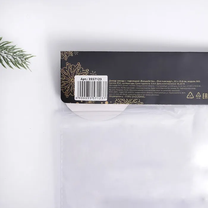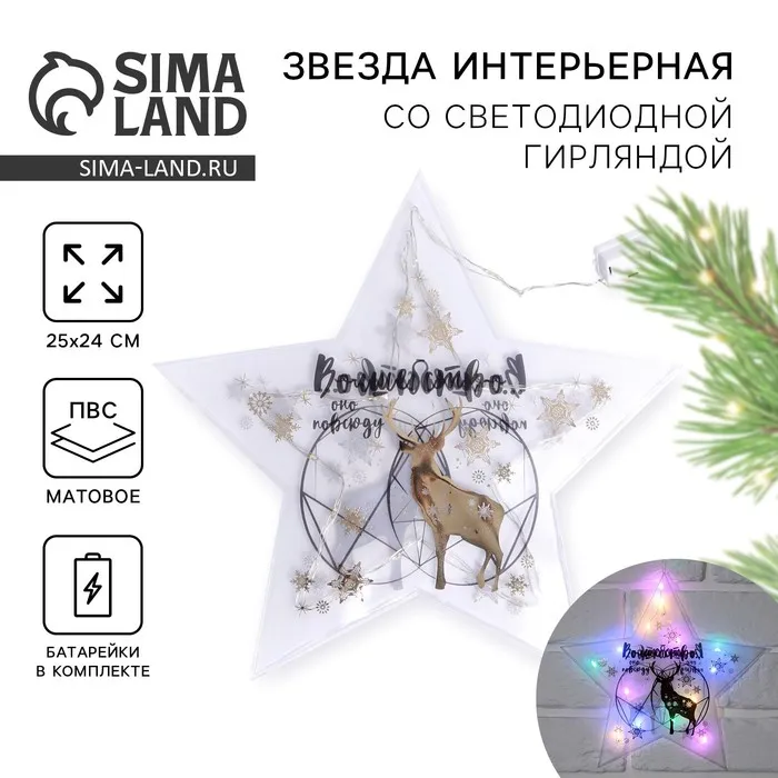 Звезда с гирляндой новогодняя «Волшебство.Оно повсюду!», 25×23.8 см — Характеристики