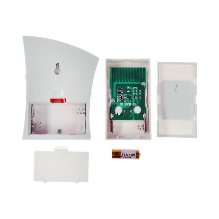 - Работа от батареек. Звонок работает за счёт двух батареек АА, кнопка – от LR23A.