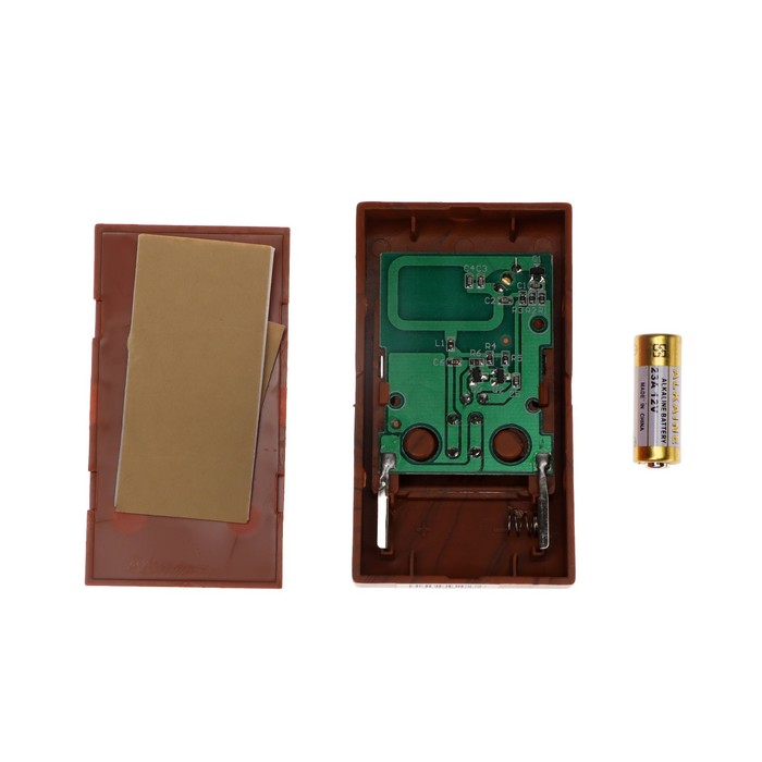- Работа от батареек. Звонок работает за счёт двух батареек АА, кнопка – от LR23A.