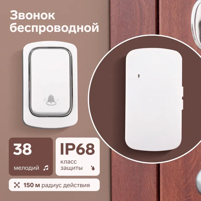 - Беспроводная связь между звонком и кнопкой обеспечивает быструю и лёгкую установку без прокладки проводов;